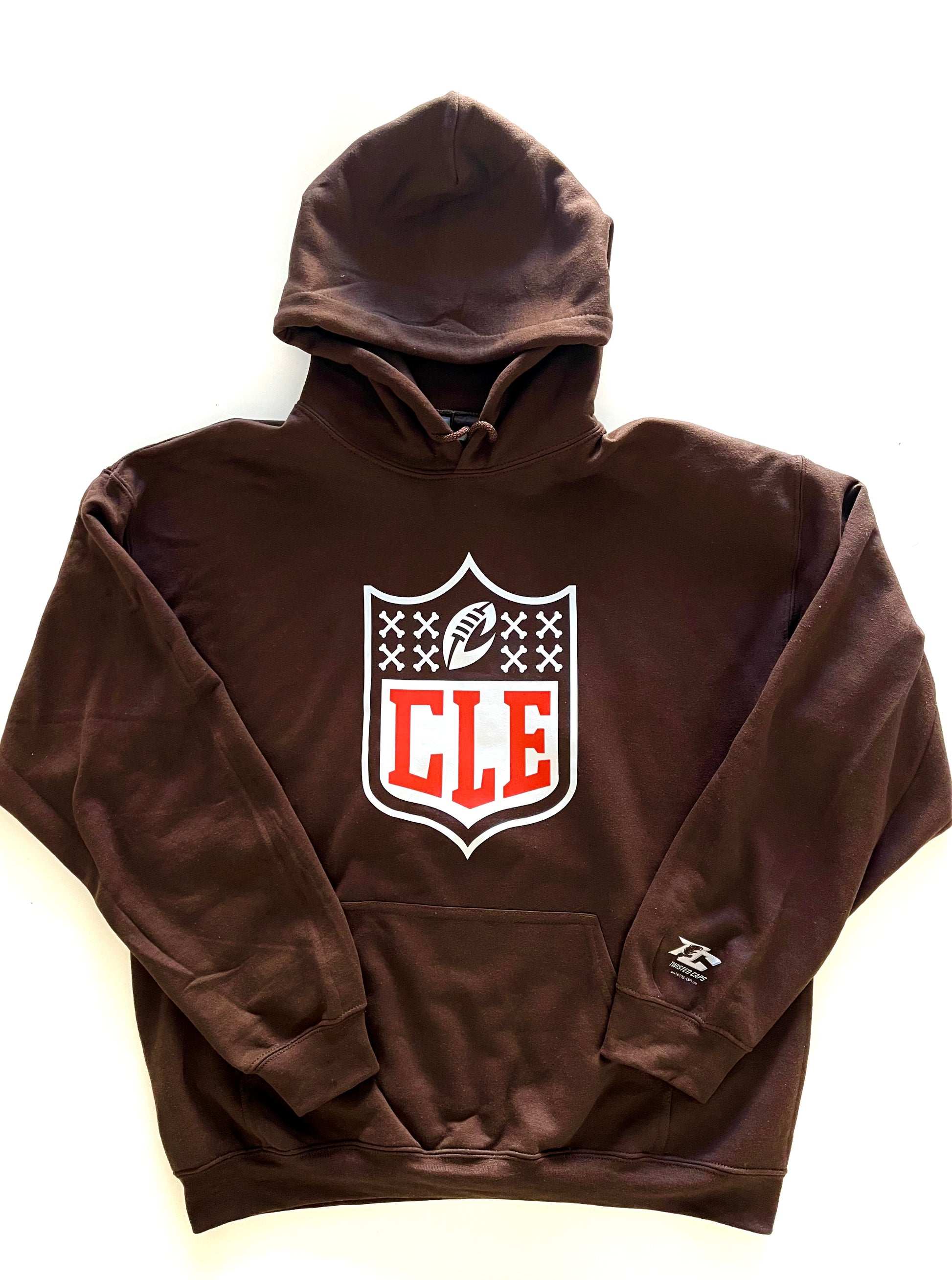 Dark brown “CLE” Shield Logo 8oz hoodie